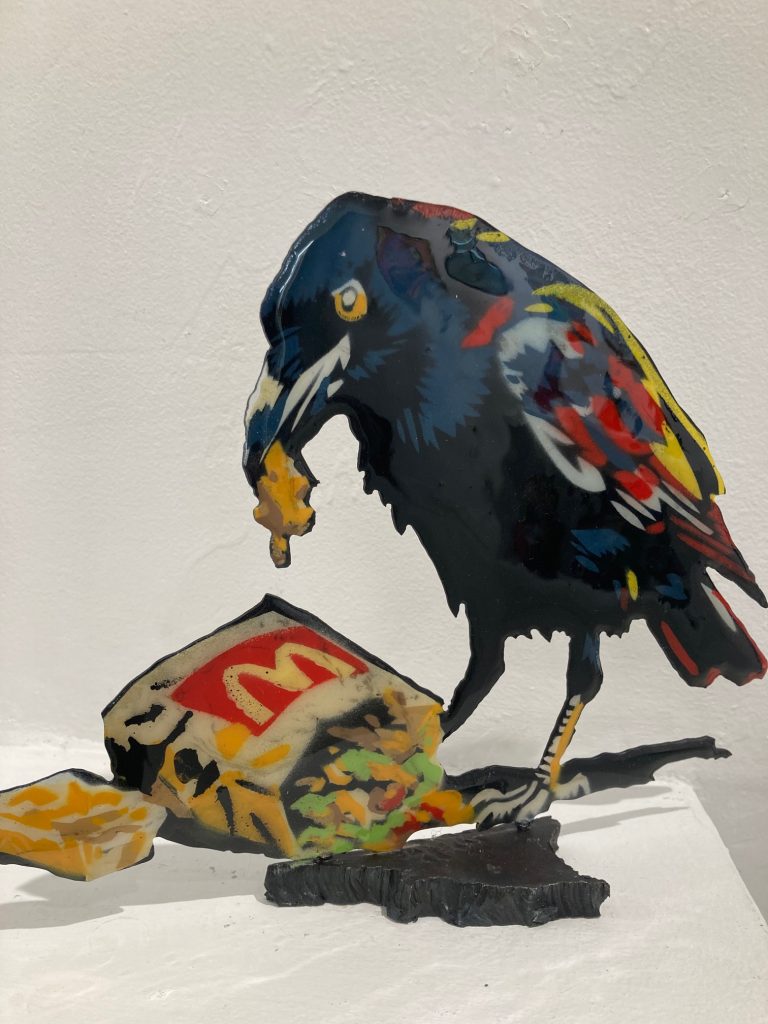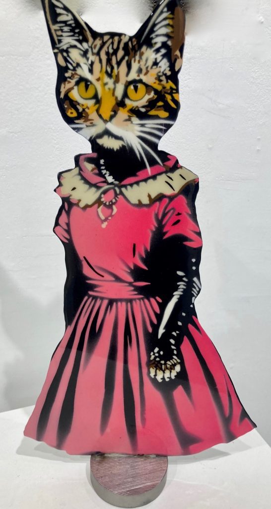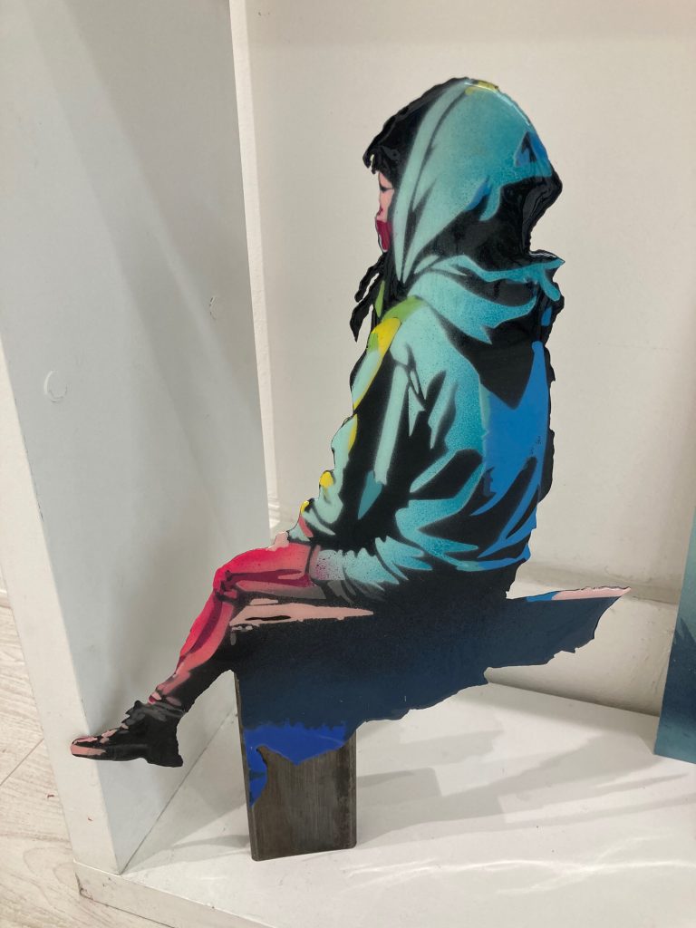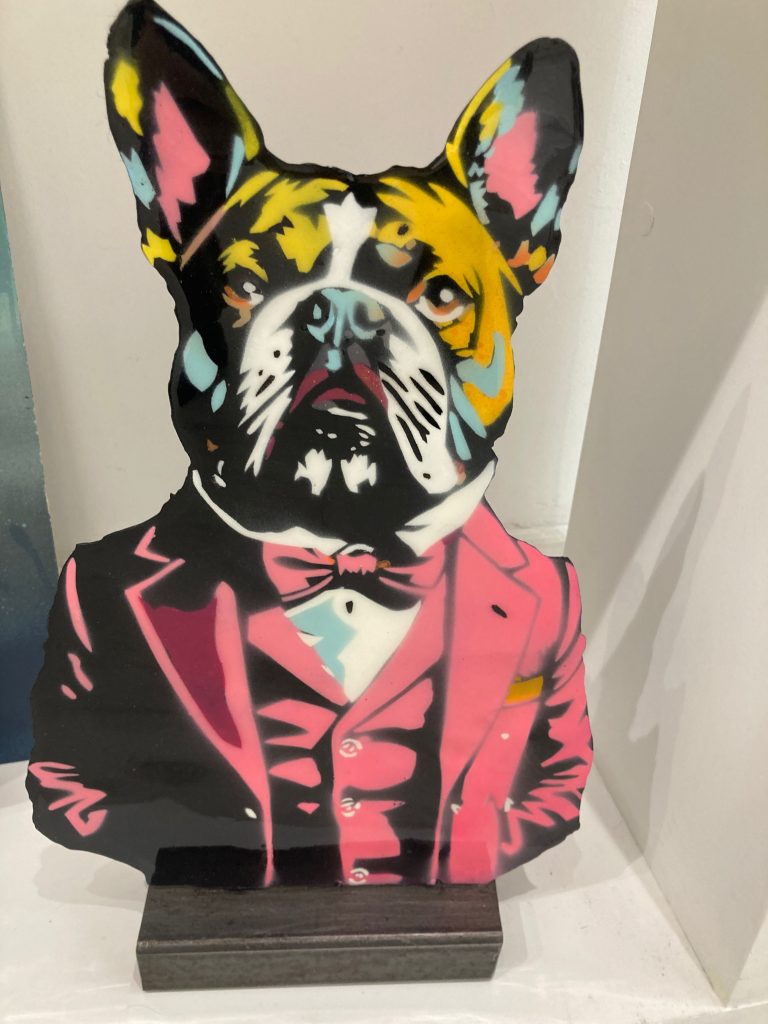 Artiste autodidacte passionné depuis toujours par la création en tout genre (sculpture, dessin, musique et j’en passe), j’ai décidé depuis quelques années d’aller plus loin en partageant mes créations au travers d’expositions, de performances et de réalisation de fresques murales collectives. Pochoiriste depuis la nuit des temps, excentrique et