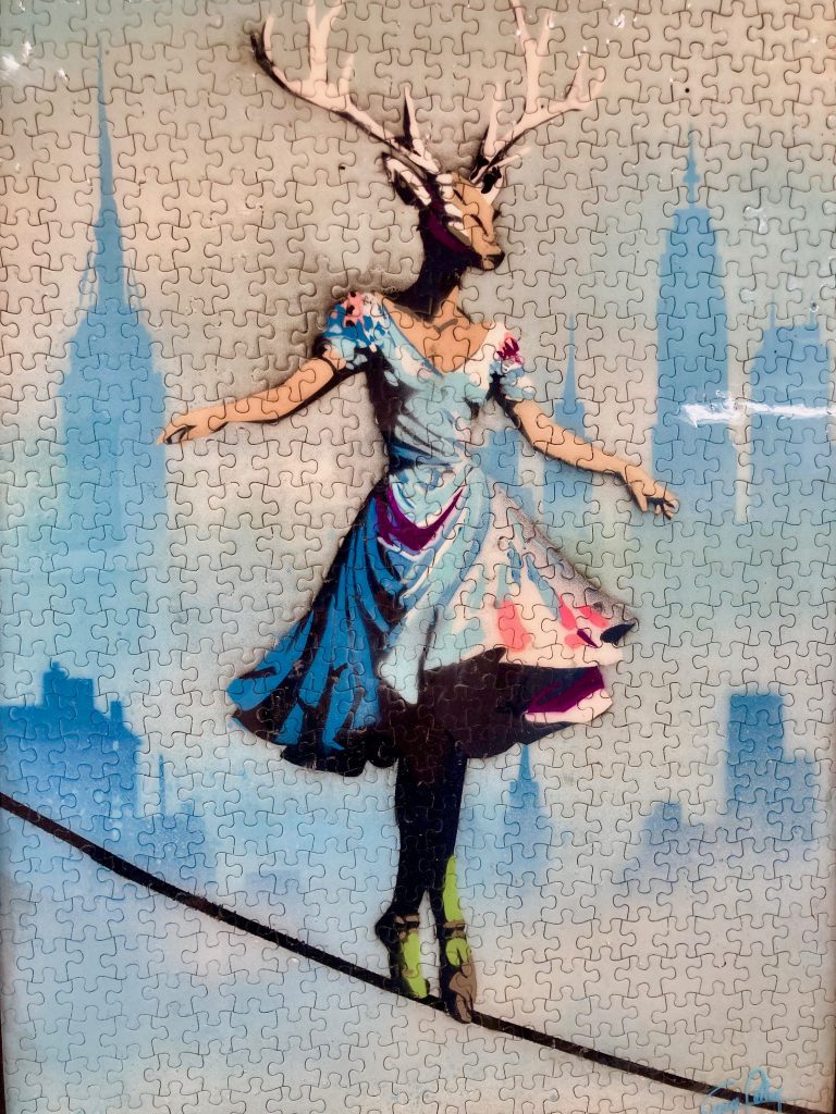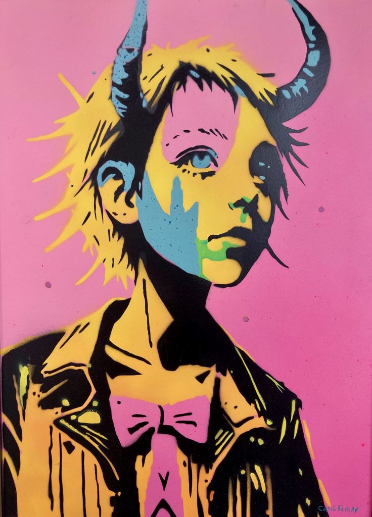 introverti, j’aime à pochoirder à peu près tout ce qui est pochoirdable. Tantôt poétiques, tantôt décalées, mes créations vous confrontent à la beauté, mais également à l’absurdité et l’ironie de ce monde. Utilisant essentiellement des matériaux de récupération (palettes, puzzles, vieux tableaux, etc…), je m’emploie à donner une seconde vie aux objets inusités. Craig Ferlay